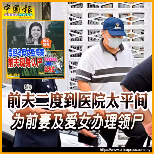 (巴生7日訊)「吉膽島碼頭母女墜海亡」案;女死者的前夫二度到巴生中央醫院太平間,為前妻和愛女辦理認領屍體手續。