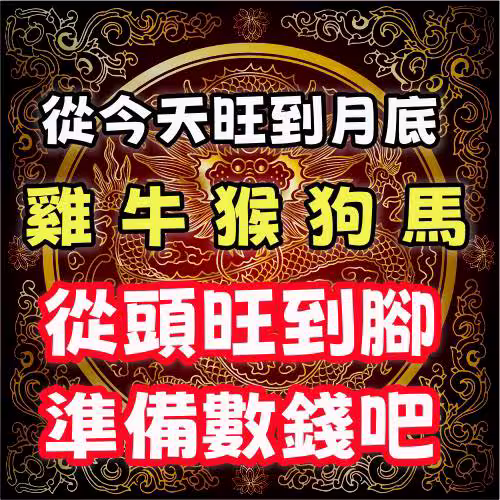 從今天旺到月底(雞牛猴狗馬)從頭旺到腳,準備數錢吧