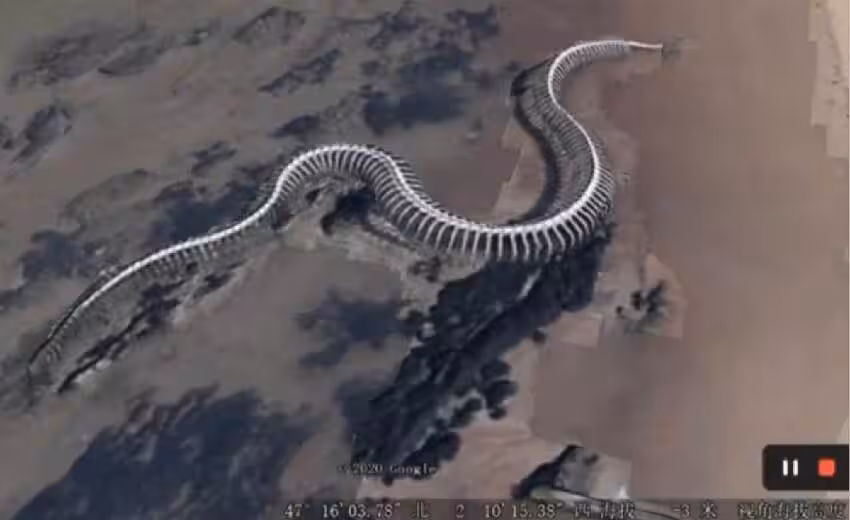 體長超百米! 22年Google地圖發現「巨蛇重建」懷疑是龍,親臨現場看真相人傻了:確實是蛇骨