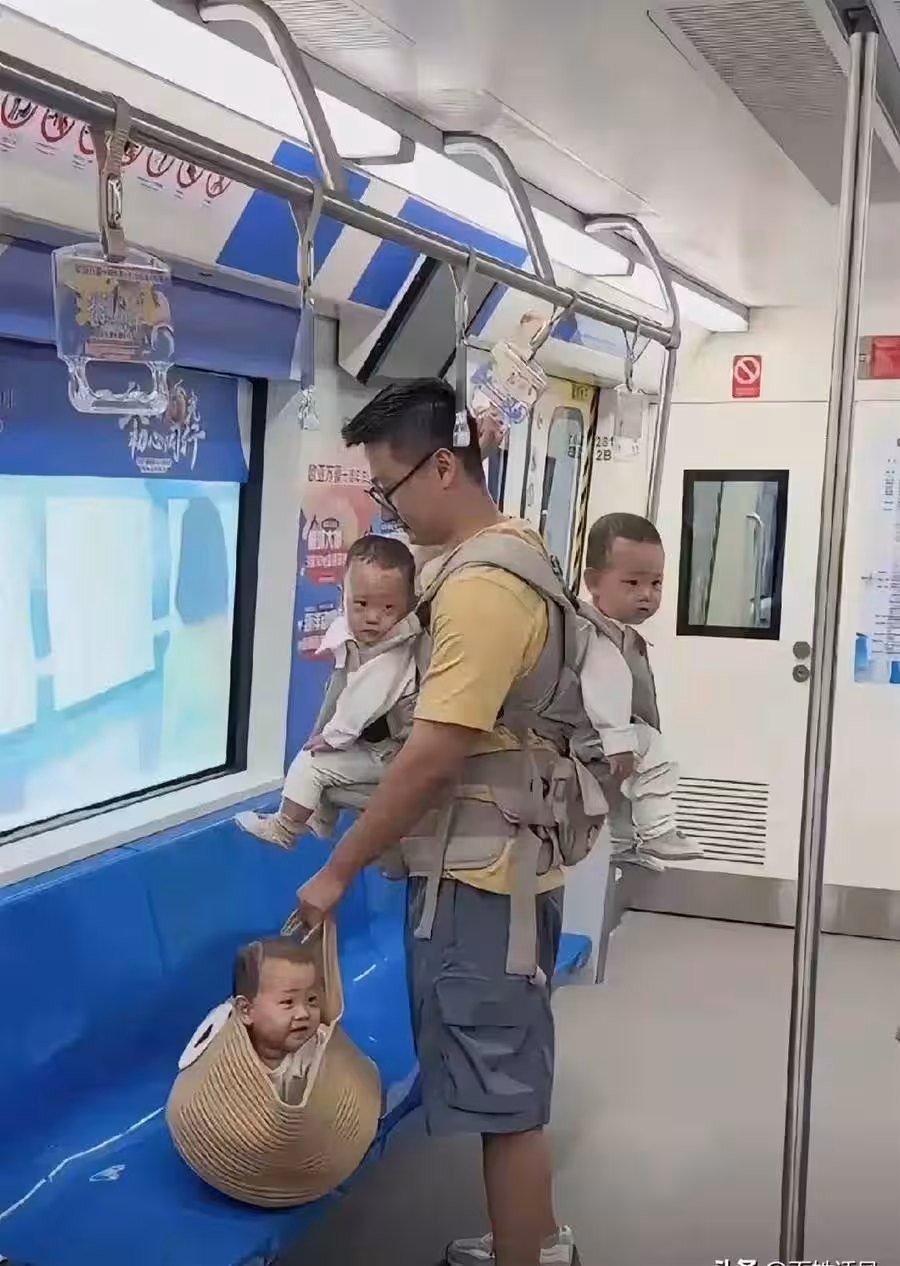 近日,一張在捷運車廂里的溫馨照片在網絡上迅速火了,成為了許多人心頭的一抹暖光。照片中,一位年輕爸爸手裡提著一個小傢伙,背上背著一位,胸前還掛著一位,這樣的「背包」畫面讓人忍不住讚嘆:這位爸爸真是「超人」級的存在!不僅如此,他還展現出了令人驚訝的冷靜和耐心,帶著三個可愛的寶寶,絲毫不見慌亂,反而讓人感受到濃濃的愛與溫暖。