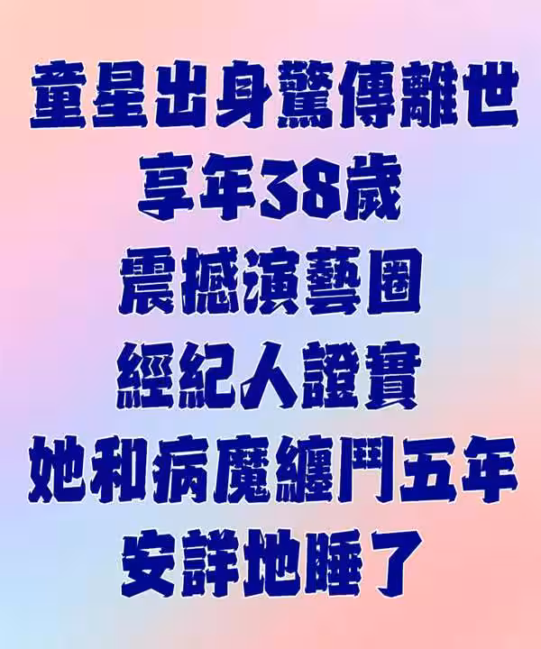童星出身!38歲星二代「驚傳離世」震撼演藝圈 經紀人證實「她和病魔纏鬥五年」:安詳地睡了。