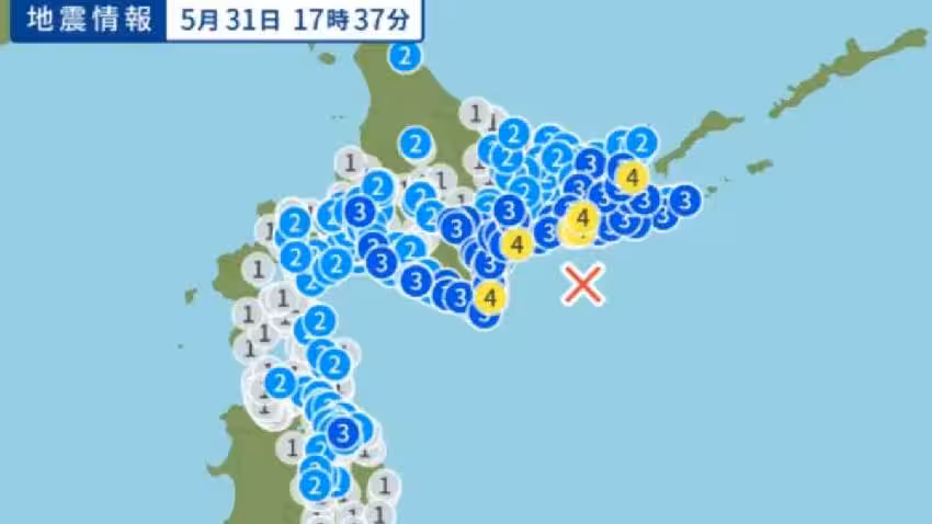 北海道近日地震連連,十勝南部地區5月26日下午發生芮氏規模5.3地震、浦河外海5月23日清晨發生芮氏規模5.6地震。
