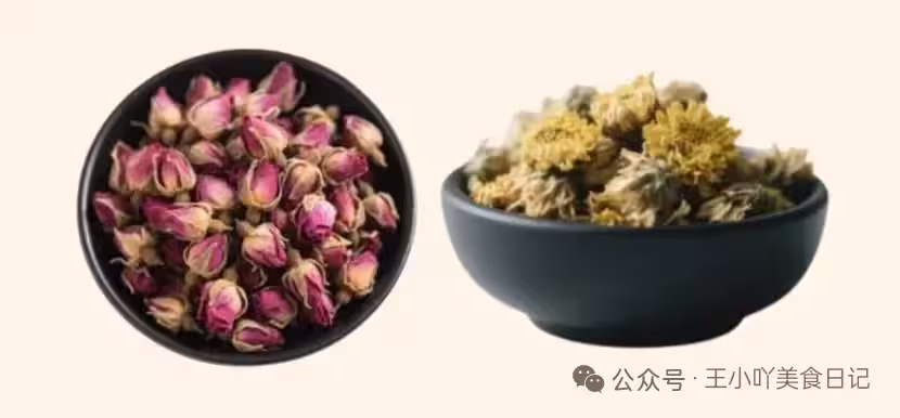 食材清單:玫瑰花5朵、菊花3朵、金銀花5g。