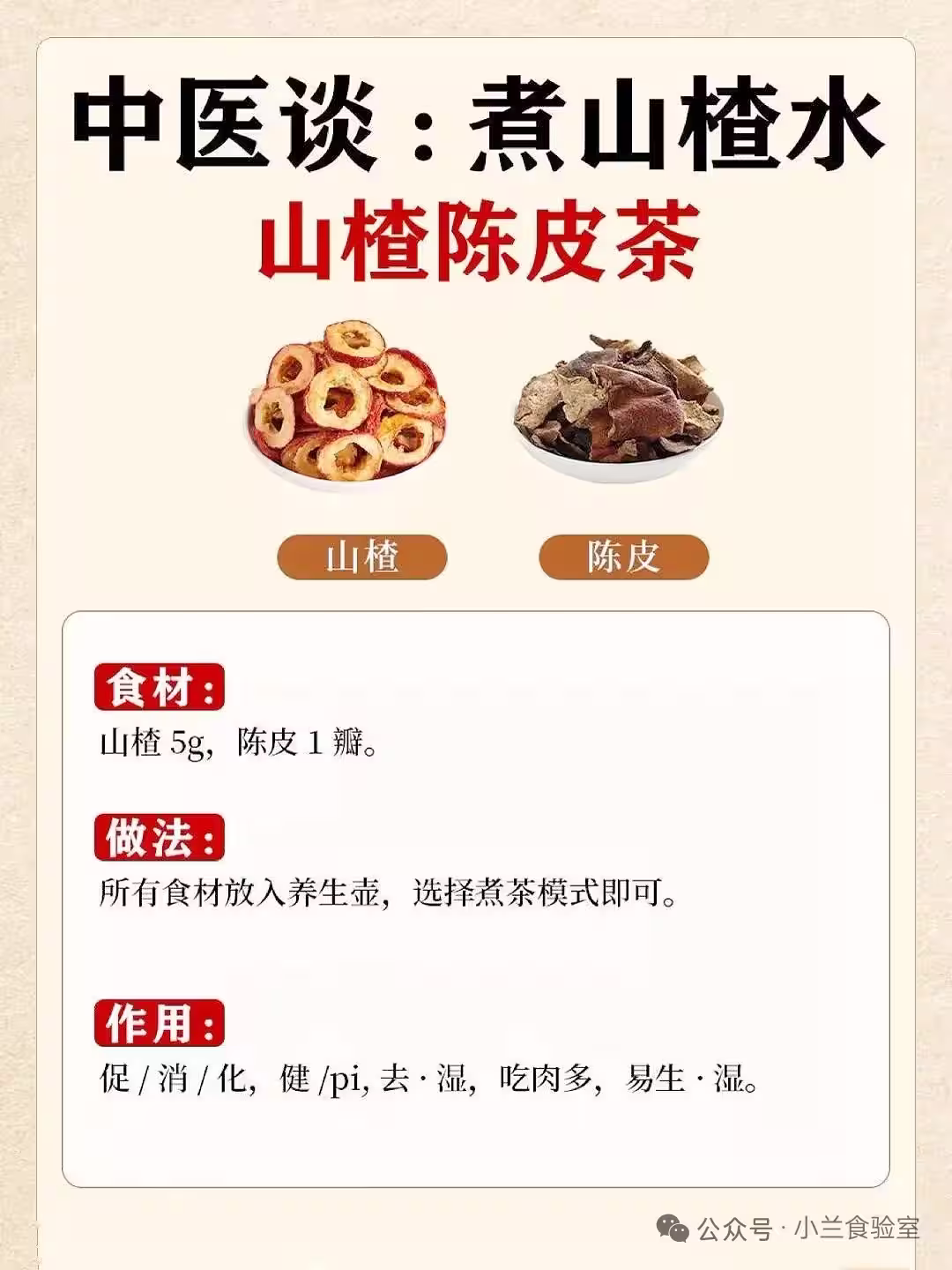 山楂5g、陳皮1瓣