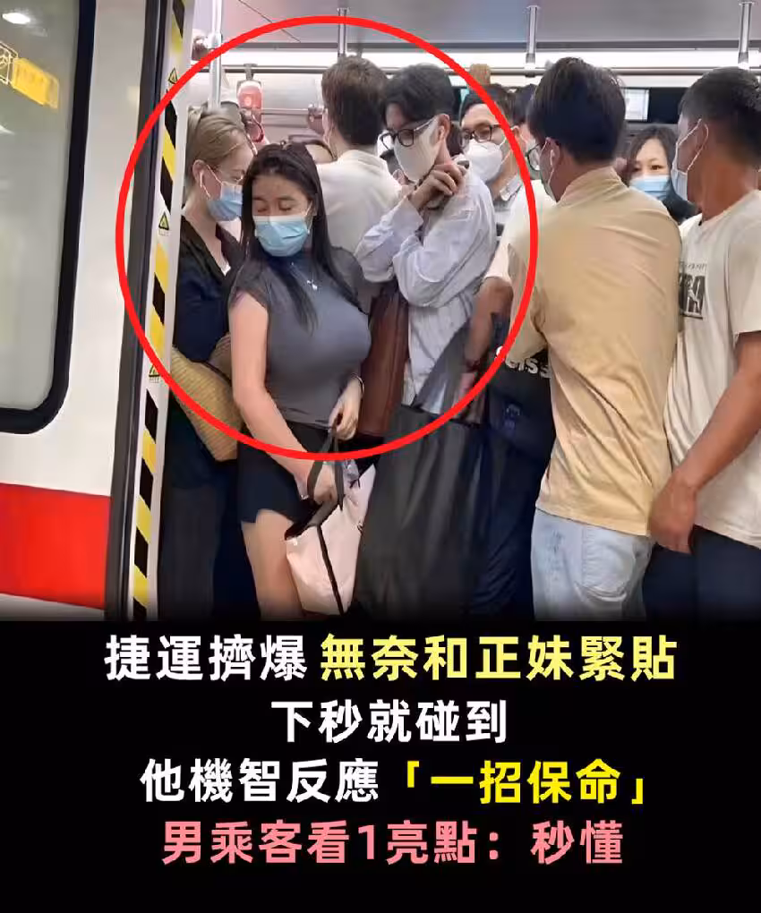 捷運擠爆,無奈和美妹緊貼「下秒就碰到」他機智反應「一招保命」男乘客看1亮點:秒懂