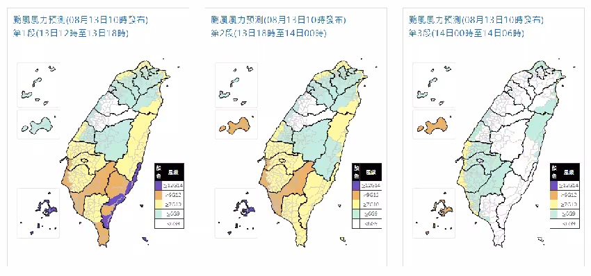 目前已宣布停班課的雲林、嘉義、台南、高雄、屏東、花蓮、台東及澎湖等地區,風力同樣達標。
