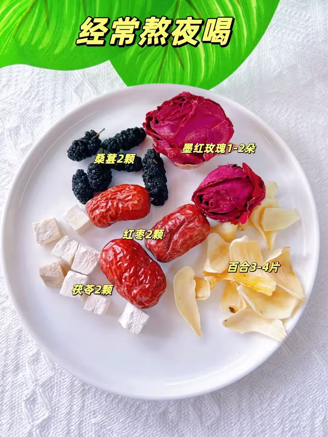 功效:桑葚花青素抗氧,玫瑰疏肝解郁,茯苓去水腫,熬夜後喝它——臉不黃、眼不凹!