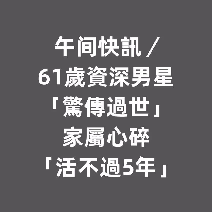 午間快訊/61歲資深男星「驚傳過世」!家屬心碎「活不過5年」
