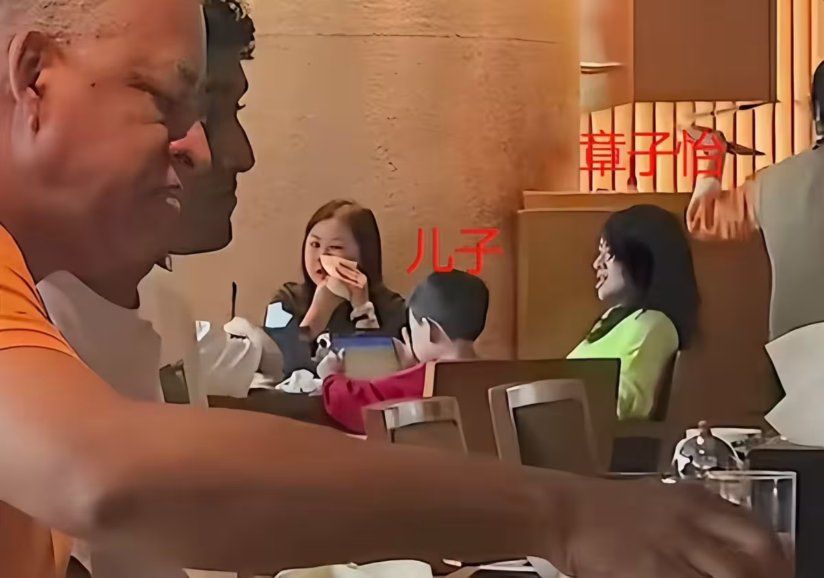 從網友分享的畫面看,當時章子怡和兒子以及兩個助理已經就餐結束了,正在休息聊天。