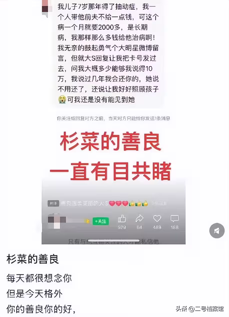 最終只有大S回復了她,在了解清楚具體費用後,大S二話不說把錢匯了過去,還表示不需要還。