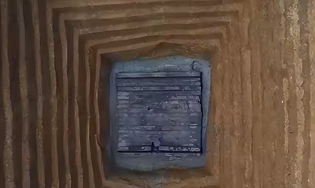 台階盡頭,二十四根巨型方木嚴絲合縫地排列,如同一道厚重的門扉,將時光鎖在了公元前316年的某個瞬間。