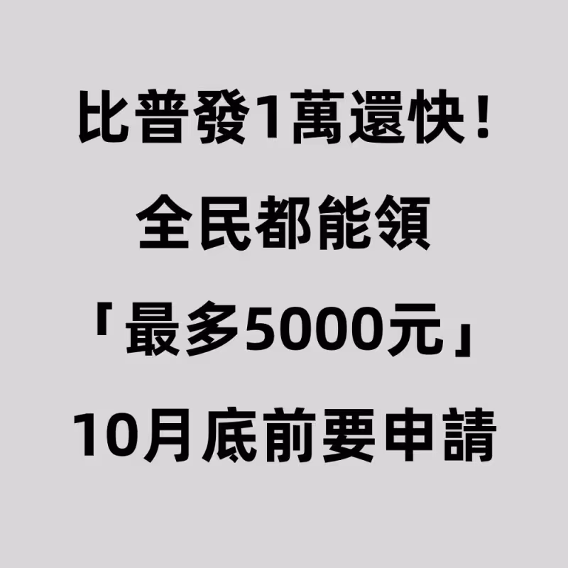 比普發1萬還快!全民都能領「最多5000元」10月底前要申請