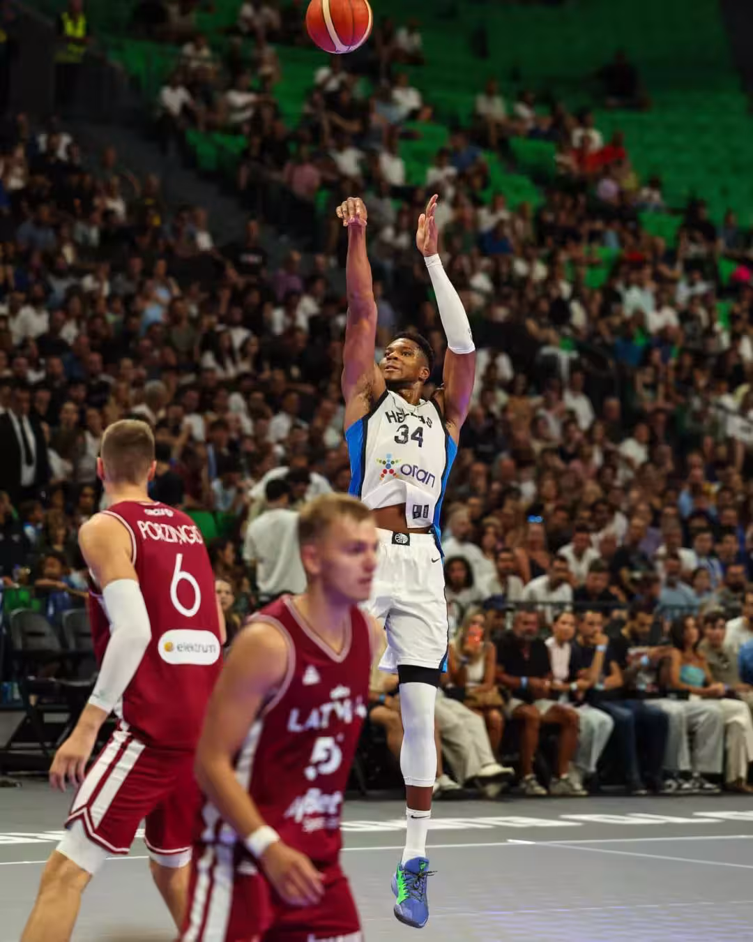 本場比賽,字母哥首發出戰15分鐘,投籃12中9,砍下25分10籃板3助攻2搶斷2蓋帽。效力拉脫維亞的波爾津吉斯本場僅得7分4籃板。