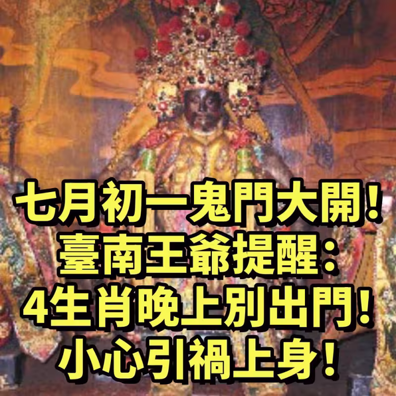 七月初一鬼門大開!台南王爺提醒:四大生肖晚上別出門,小心引禍上身!