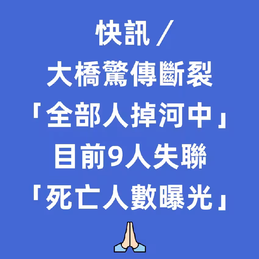 快訊/大橋驚傳斷裂「全部人掉河中」!目前9人失聯「死亡人數曝光」