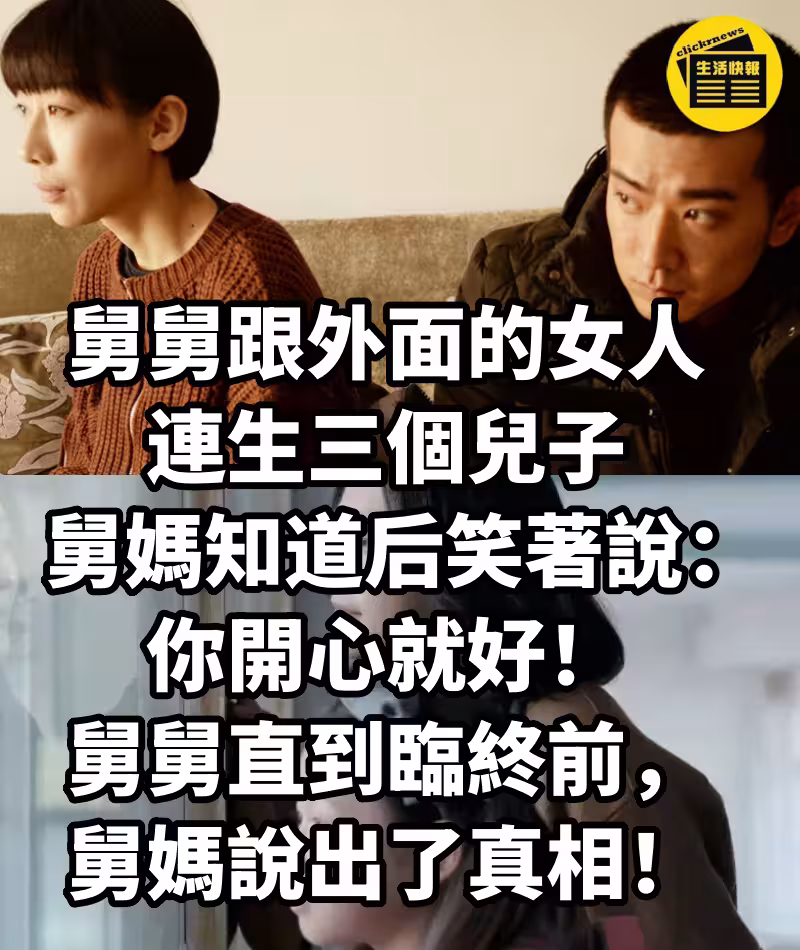 舅舅跟外面的女人連生三個兒子,舅媽知道後笑著說:你開心就好!舅舅直到臨終前,舅媽說出了真相