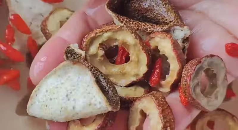 小貼士:王爺爺特意叮囑,陳皮一定要選3年以上的!他說:「一年皮是草,三年皮才是寶!」顏色暗紅、紋理清晰、聞起來有淡淡果香味的最好。