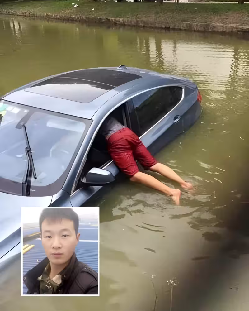 正當想著怎麼樣可以幫他們一把時,一個男子跳了下去朝車的方向移動。 岸邊的人神經緊繃,生怕下一秒發生什麼意外,過了很久,在岸邊群眾的幫助下,三人終於成功上岸。