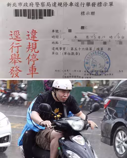 馬上選擇停下車來穿雨衣的他,竟然意外吃上一張罰單。
