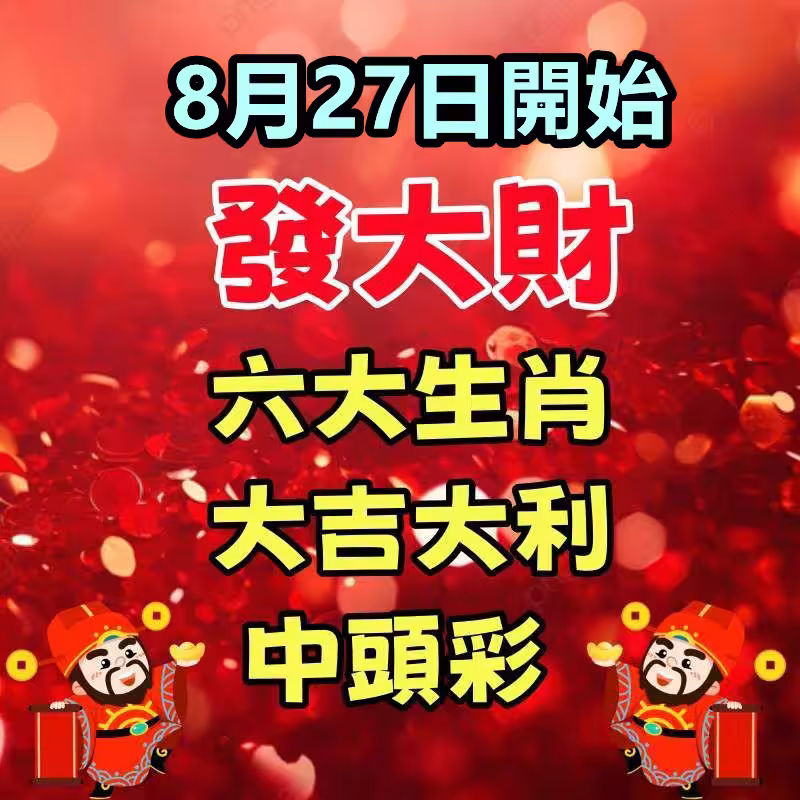 8月27日開始發大財,六大生肖大吉大利中頭彩。