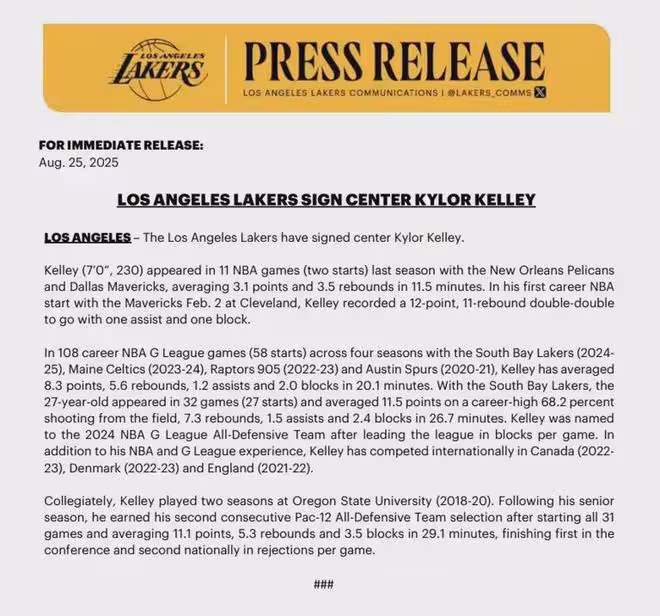 如今,凱利加盟洛杉磯湖人隊,他將面臨全新的挑戰和機遇。湖人隊作為NBA歷史上的傳統強隊,擁有著深厚的文化底蘊和強大的競爭氛圍。凱利需要迅速融入球隊的戰術體系,與隊友們建立良好的默契。他能否在湖人隊的訓練營中脫穎而出,成功留在球隊正式陣容中,讓我們拭目以待。相信在未來的日子裡,凱利會用自己的實際行動書寫屬於他的籃球故事。