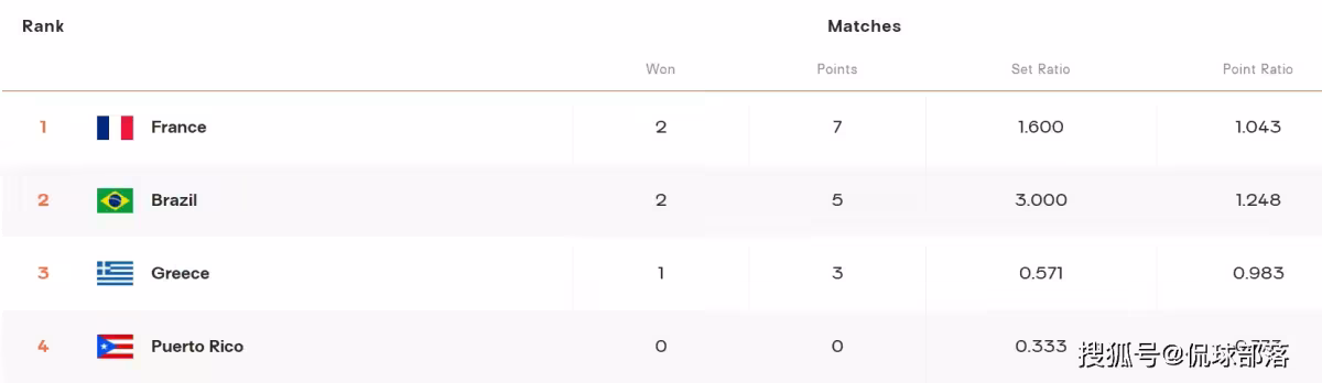 這是法國隊戰勝希臘隊之後的最新積分榜,當時法國隊積7分登上小組第一,巴西隊少賽一輪退居小組第二。