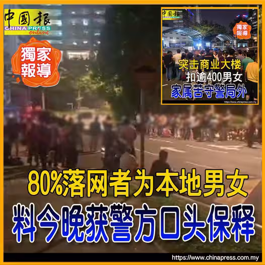 根據《中國報》探悉,其中80%被扣查者,都是本地人,警方原定今早申請延扣令,以延扣這400多男女作深入調查,但不獲批准。