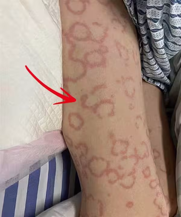 然而,眼前的景象讓她瞬間睡意全無,發出了一聲驚叫——她的兩條小腿上,竟然布滿了密密麻麻、圓形的鮮紅色斑疹!