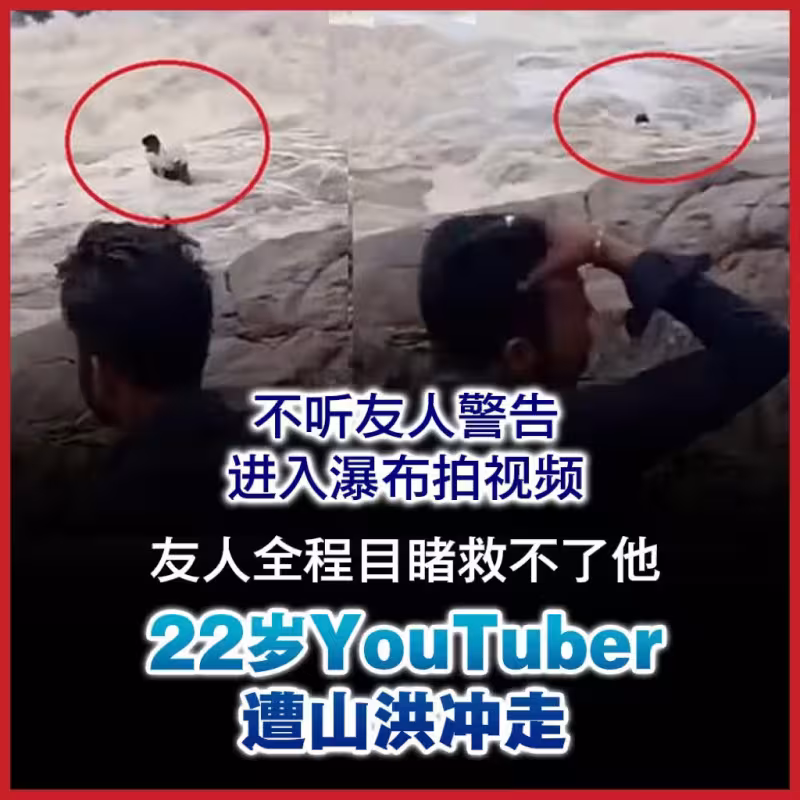 男子拍視頻遭山洪沖走 友全程目睹救不了他