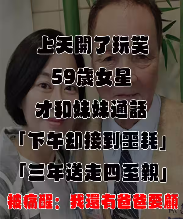 上天開了玩笑!59歲女星才和妹妹通話「下午卻接到噩耗」 「三年送走四至親」被痛醒:我還有爸爸要顧...