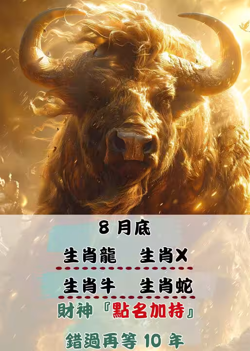 老話說得好:「命里有時終須有,命里無時莫強求。 」可有些時候啊,這運勢就跟那春雨似的,說來就來,淋得人滿身喜氣!眼瞅著8月底到了,池池翻遍古籍、查了又查,發現有四個生肖的朋友怕是要被財神爺追著喂飯咯——他們不僅得天賜福運,更能精準抓住關鍵契機,讓錢包鼓得比八月十五的月亮還圓溜!今兒個咱就掰著指頭好好嘮嘮,看看有沒有你家那位?