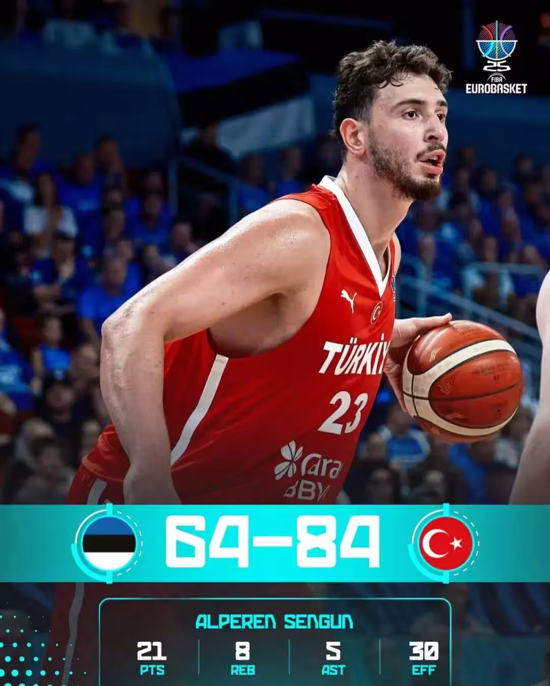 此役申京13投8中,三分3中2,罰球3中3,得到21分8籃板5助攻1搶斷1蓋帽。申京連續三場比賽砍下至少20+5+5,成為歐洲杯近30年首個完成這一壯舉的球員。本屆歐洲杯,申京場均20分8.8籃板6.5助攻,投籃命中率高達68.1%。
