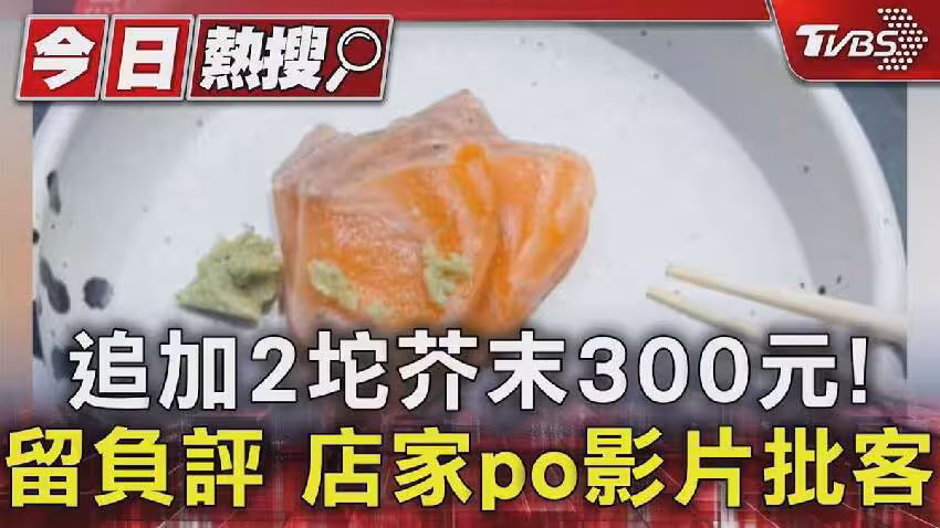 」社群直接公開影片,點名客人追加了兩次新鮮現磨的阿里山山葵,用餐結束打包外帶,哇沙米也一起包走了,結帳時,額外追加的哇沙米要收三百塊,消費者付錢付得不甘願。