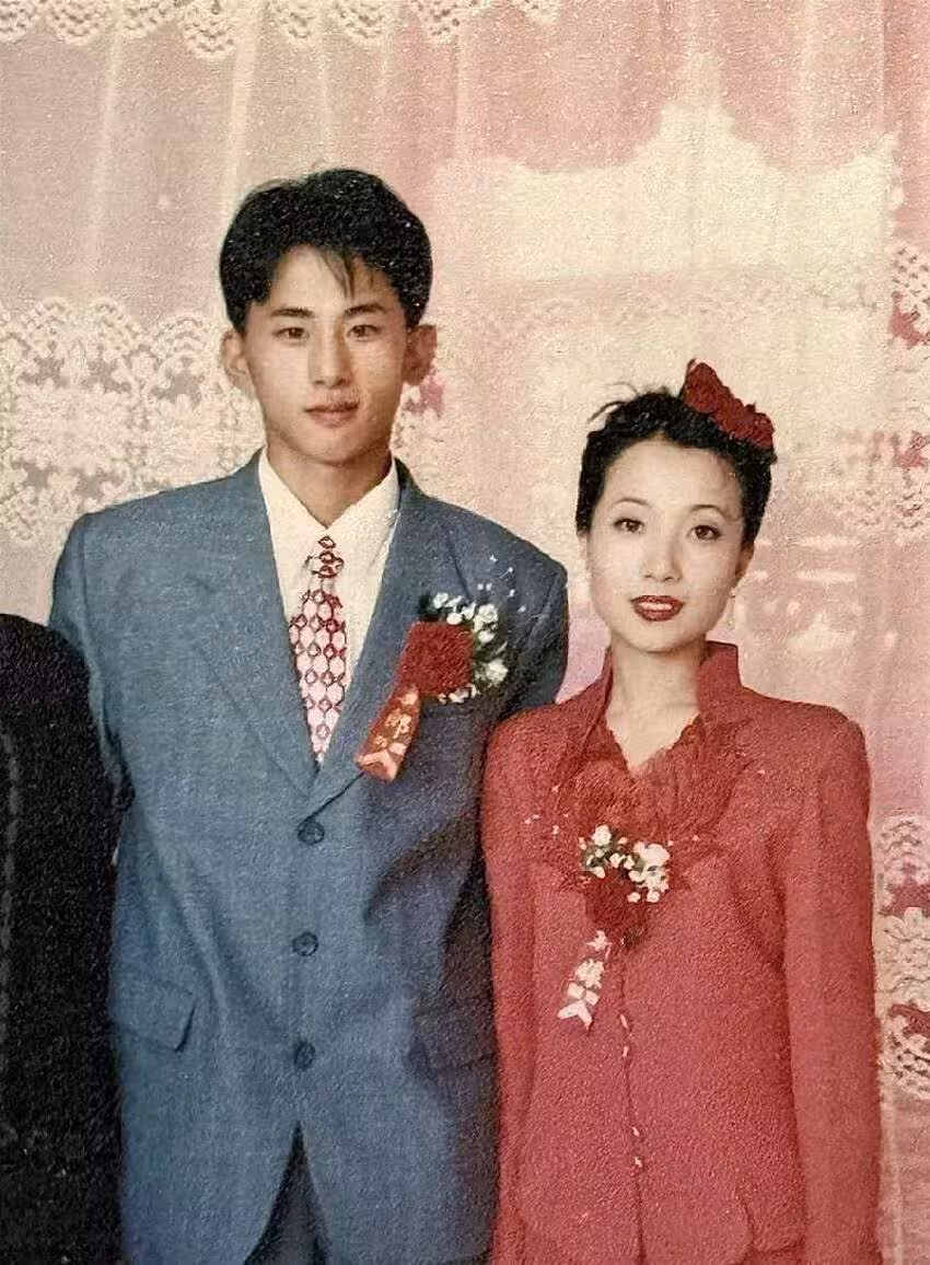 照片中,年輕的父母面容青春,眼中充滿了對未來的憧憬與希望。