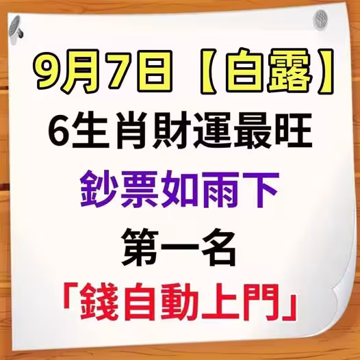 9月7日【白露】有偏財,鈔票如雨下的生肖! 第1名「錢自動上門」
