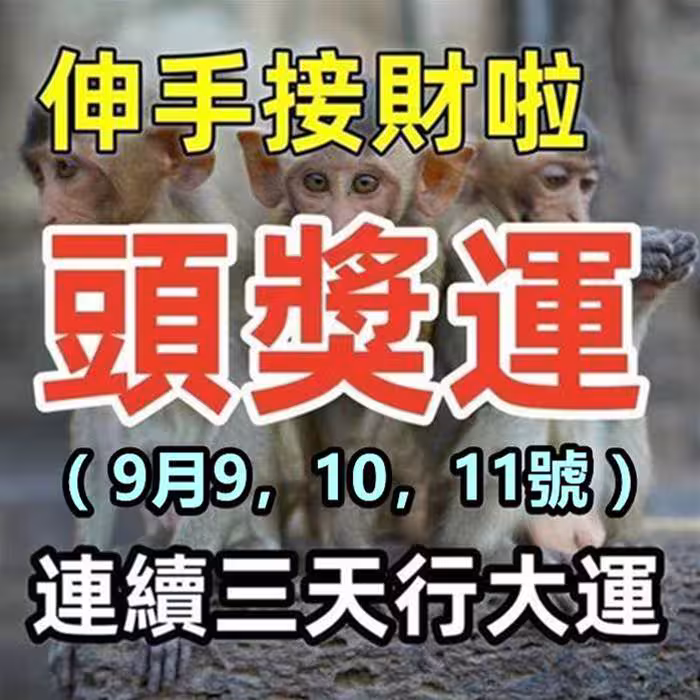 關於運勢,9月9,10,11號生肖猴有「天魁」吉星庇佑,財運大好,生意上門找,注意伸手接財,未必定能如願,但至少不會弄髒您的手。