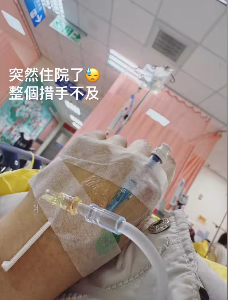 根據《民視新聞》報導,柯以柔無預警宣布工作喊卡,坦言19日緊急住院,吊點滴的照片也跟著曝光。