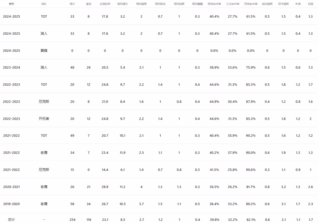 不過在23-24賽季,雷迪什幫助湖人奪得了NBA杯賽冠軍,這也是他迄今為止的NBA生涯唯一的榮譽。