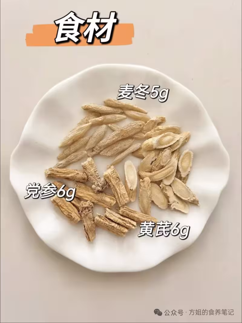 食材:麥冬5g;黨參6g;黃芪6g