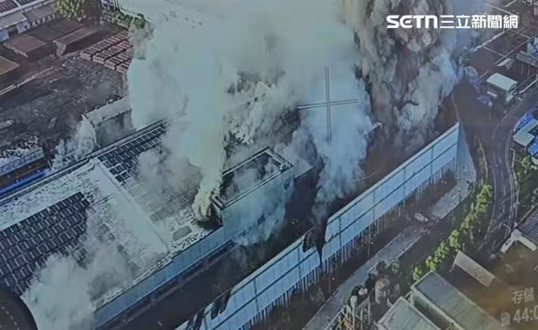 廠區全面悶燒。 現場空拍畫面曝光!廠區全面悶燒