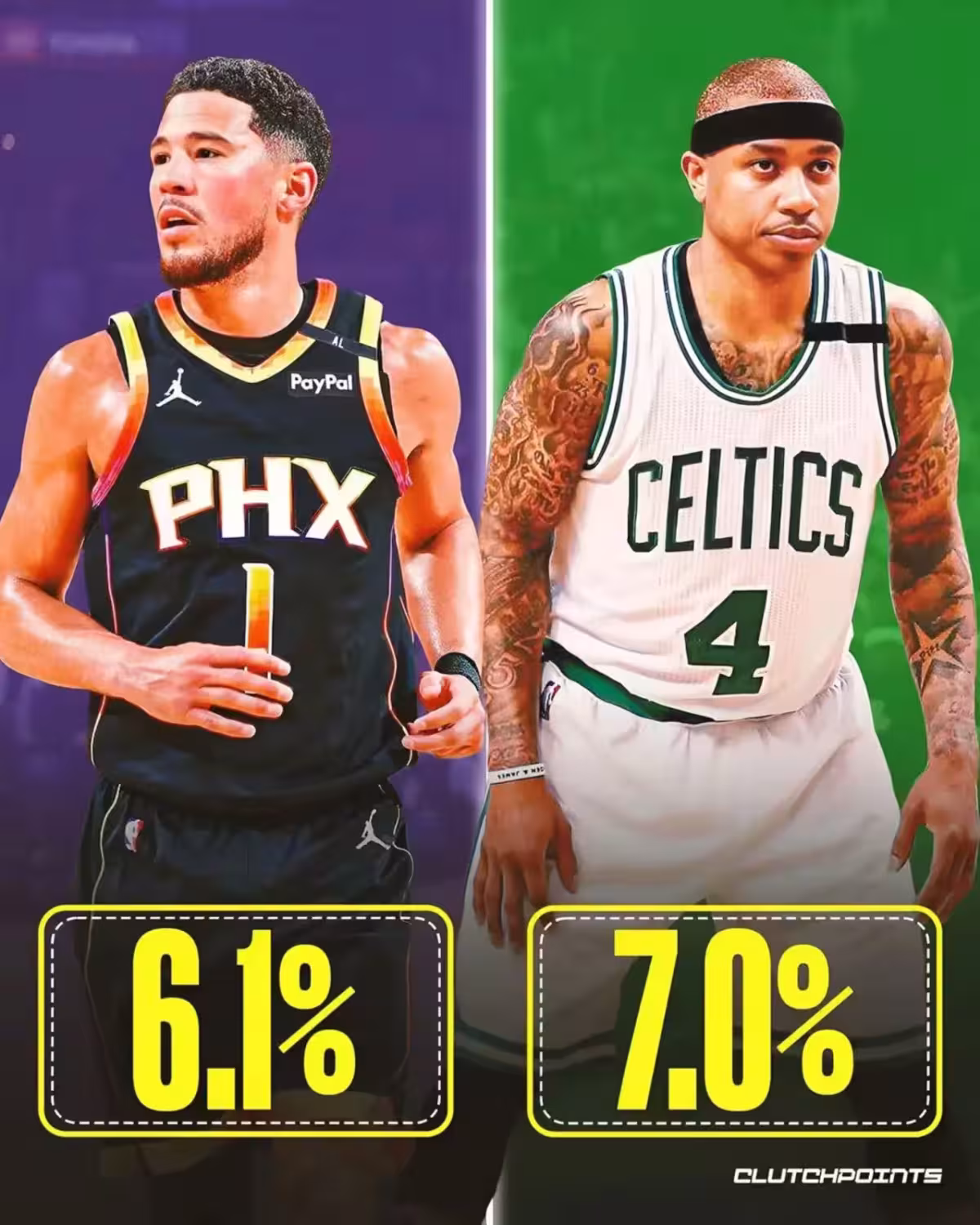布克被認為入選的機率是6.1%,雖然過去幾年都是聯盟的一線分衛,但是布克從未以第一核心帶隊取得成功,所以他入選的機率不高也可以理解,但隨著生涯的深入,我認為他入選的機率會大大增加。以賽亞托馬斯被認為機率是7%,這位是地表最強175,曾帶隊打進過分區決賽,非常勵志的球員,他確實是有機會入選名人堂。
