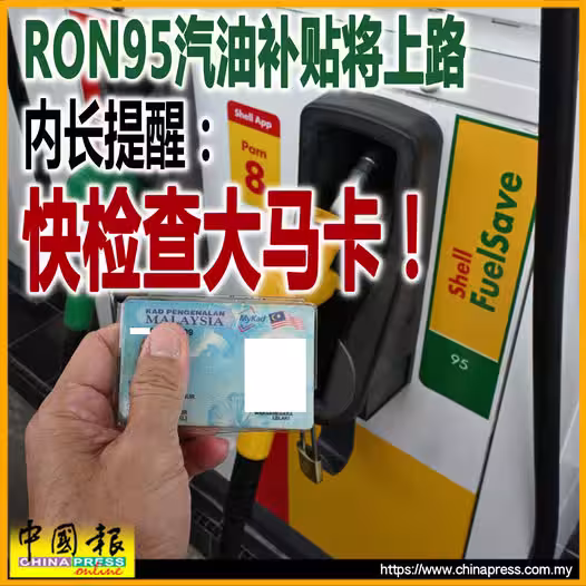 RON95汽油補貼將上路 內長提醒:快檢查大馬卡!