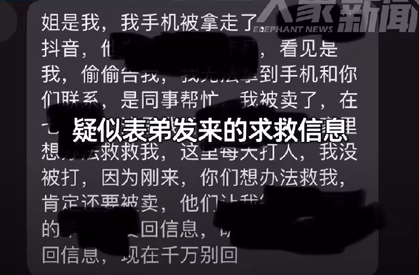 幾天後,家人收到了疑似男生髮來的求救信息,說自己被同事賣了,希望姐姐能救救自己,這裡每天都在打人。