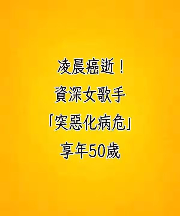 凌晨癌逝!資深女歌手「突惡化病危」享年50歲!