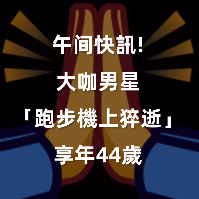 午間快訊/大咖男星「跑步機上猝逝」享年44歲