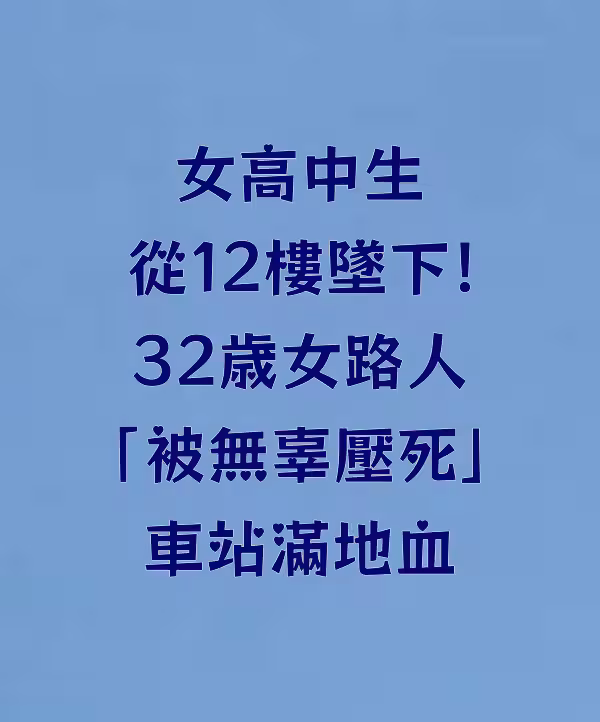 女高中生從12樓墜下!32歲女路人「被無辜壓死」車站滿地血