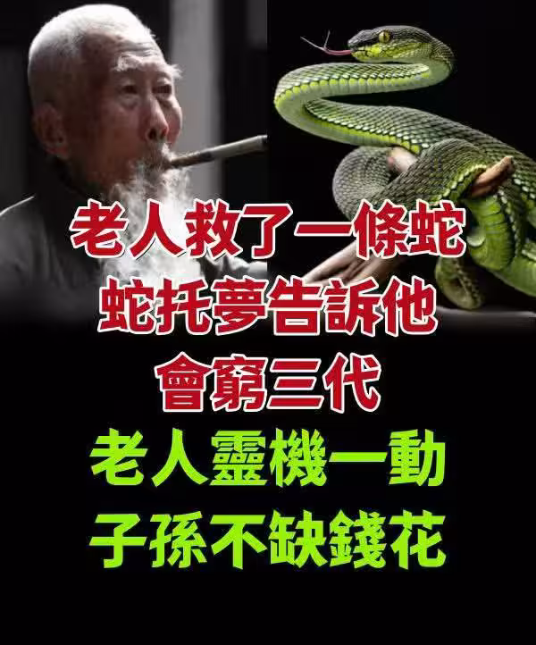 老人救了一條蛇,蛇託夢告訴他會窮三代,老人靈機一動,子孫不缺錢花!