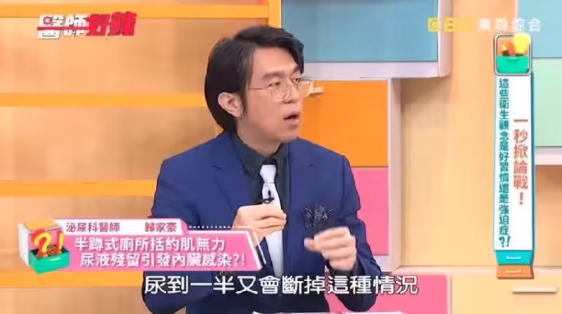 他也藉由這個案例提醒大家,「半蹲式尿尿」會讓大腿無法放鬆,骨盆底肌會不由自主地收縮,就沒辦法把尿排得很乾凈。