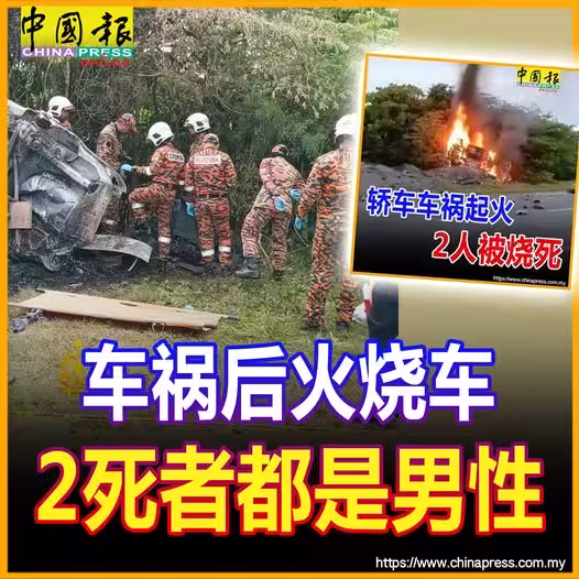 (北海4日訊)一輛寶騰賽佳國產轎車在車禍後起火燃燒,車內兩人被燒死,檳城消拯局證實,兩名死者均為男性,其他身份資料仍有待確認。