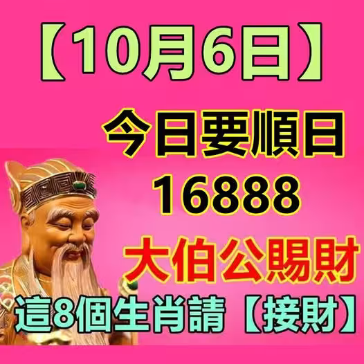 10月6日【中秋節】今日要順日,大伯公賜財,這8個生肖請接財